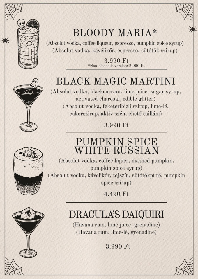 As darkness falls over the Danube, the city lights shimmer on the waves, setting the perfect scene for an unforgettable Halloween night. Step aboard our haunted Blood Vessel and sail through Budapest while enjoying a Halloween-themed cocktail and tasting from our selection of spooky Halloween bites – self-service style.